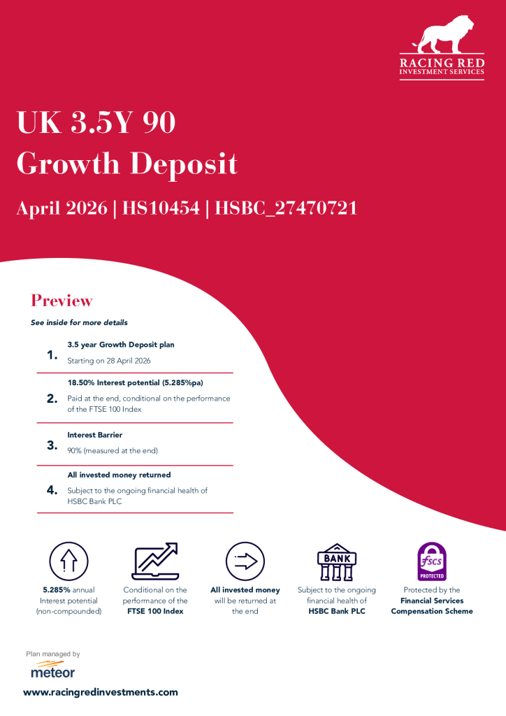 Deposit based: Deposit based plans are similar to Structured Investment Products, however UK investors may benefit from the Financial Services Compensation Scheme’s (FSCS) deposit insurance scheme, subject to certain limits.