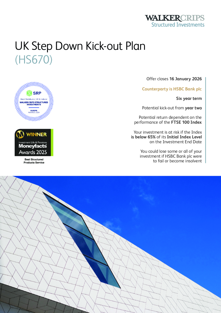 Deposit based: Deposit based plans are similar to Structured Investment Products, however UK investors may benefit from the Financial Services Compensation Scheme’s (FSCS) deposit insurance scheme, subject to certain limits.